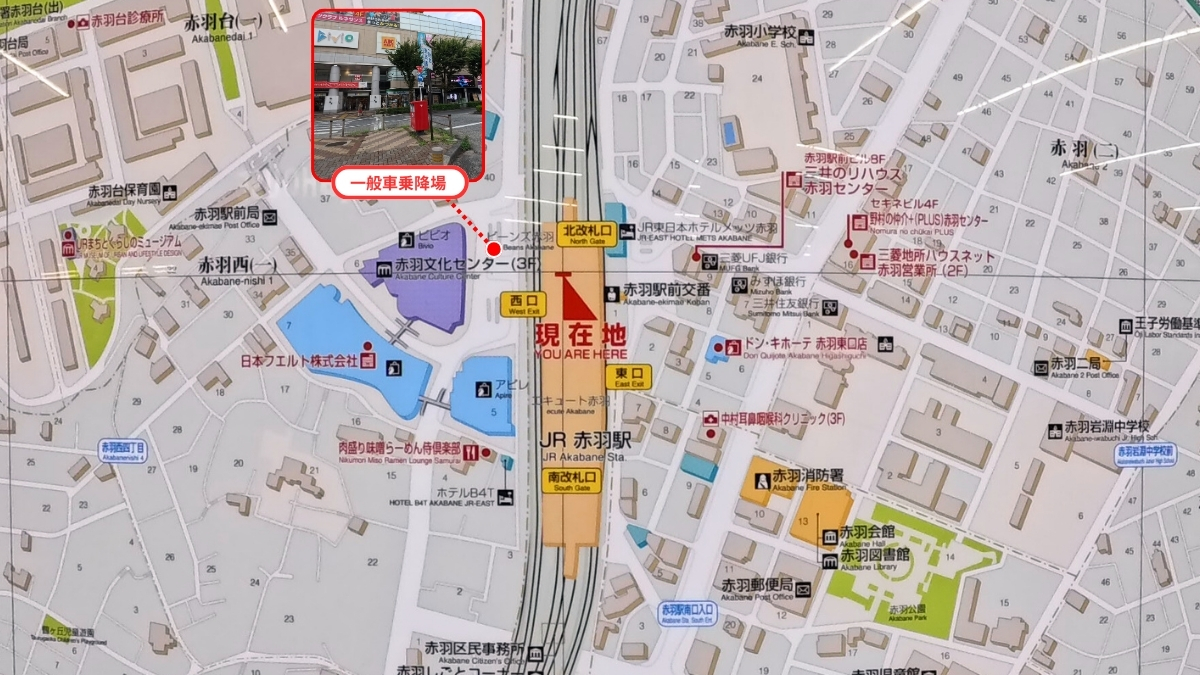 • 赤羽駅西口一般車乗降場の最寄りの改札口と行き方