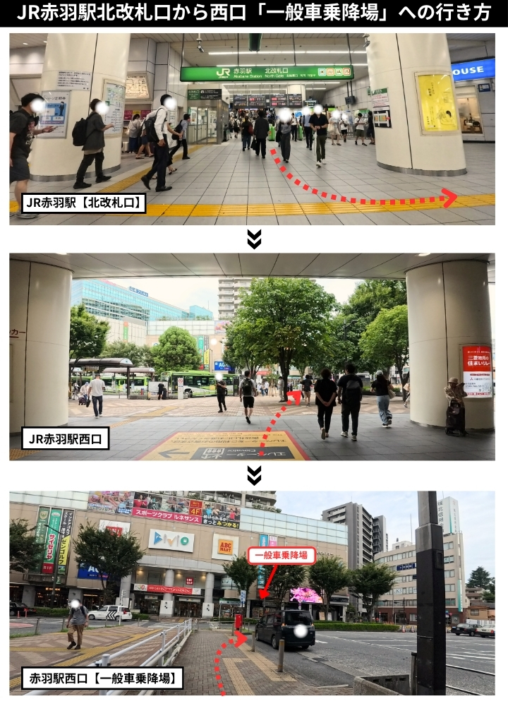 赤羽駅西口「一般車乗降場」の場所を写真解説|改札からロータリー内にある車寄せへの行き方や休日の混雑状況を紹介