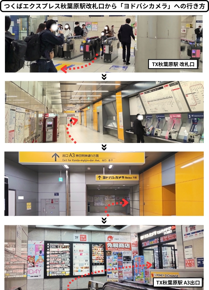 秋葉原ヨドバシは何口?JR・東京メトロ日比谷線・つくばエクスプレス(TX)の改札口や最寄りの出口・行き方を写真解説