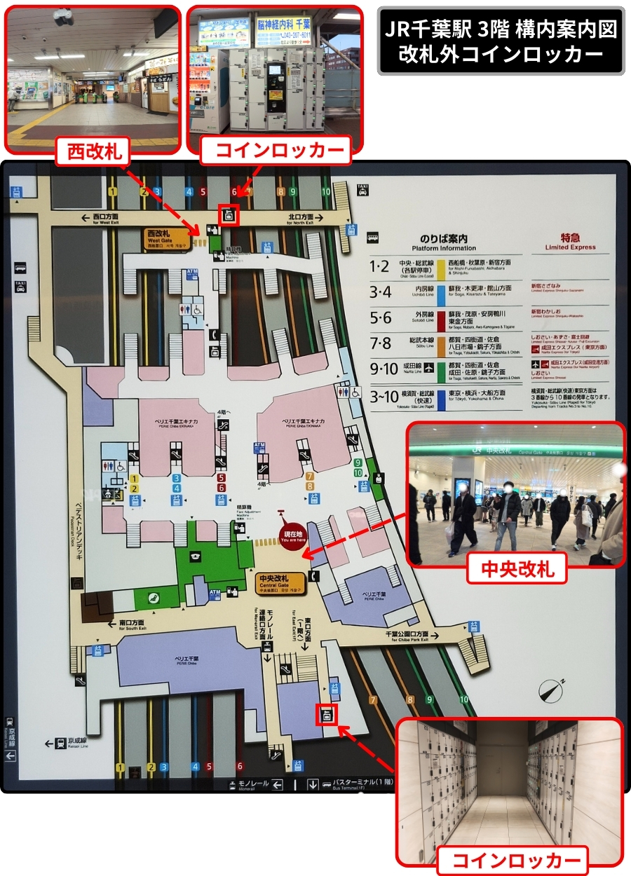 JR千葉駅改札内コインロッカーの設置場所を構内図を元に解説|口数・サイズ別料金・空き状況を紹介