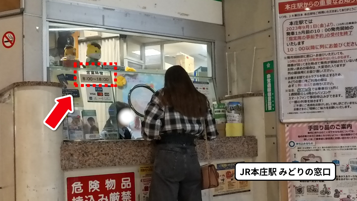 JR本庄駅「みどりの窓口」の営業時間は8:00~18:00となっています。