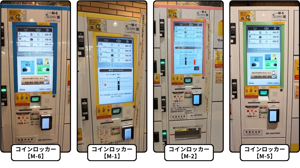 - 改札外にはM-1・M-2・M-5・M-6の4台があり、M-1のみSSサイズ(300円)も取り扱っている