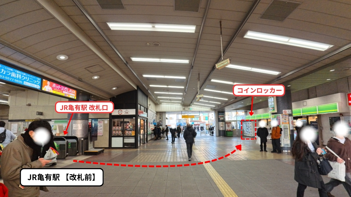 • JR亀有駅改札口からコインロッカー設置場所への行き方