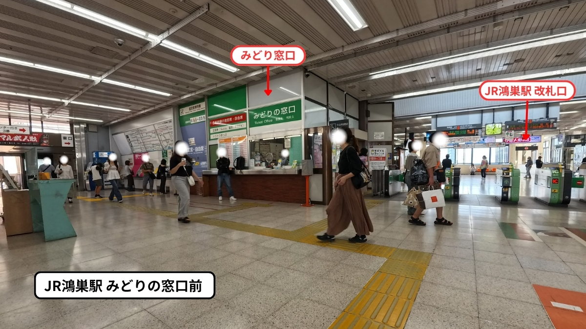 - JR鴻巣駅改札口から「みどりの窓口」への行き方