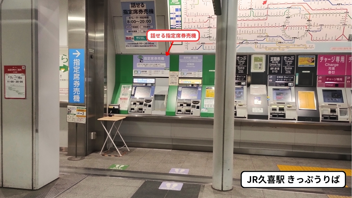 JR久喜駅の「話せる指定席券売機」は、きっぷうりばの一番左側に設置されています。