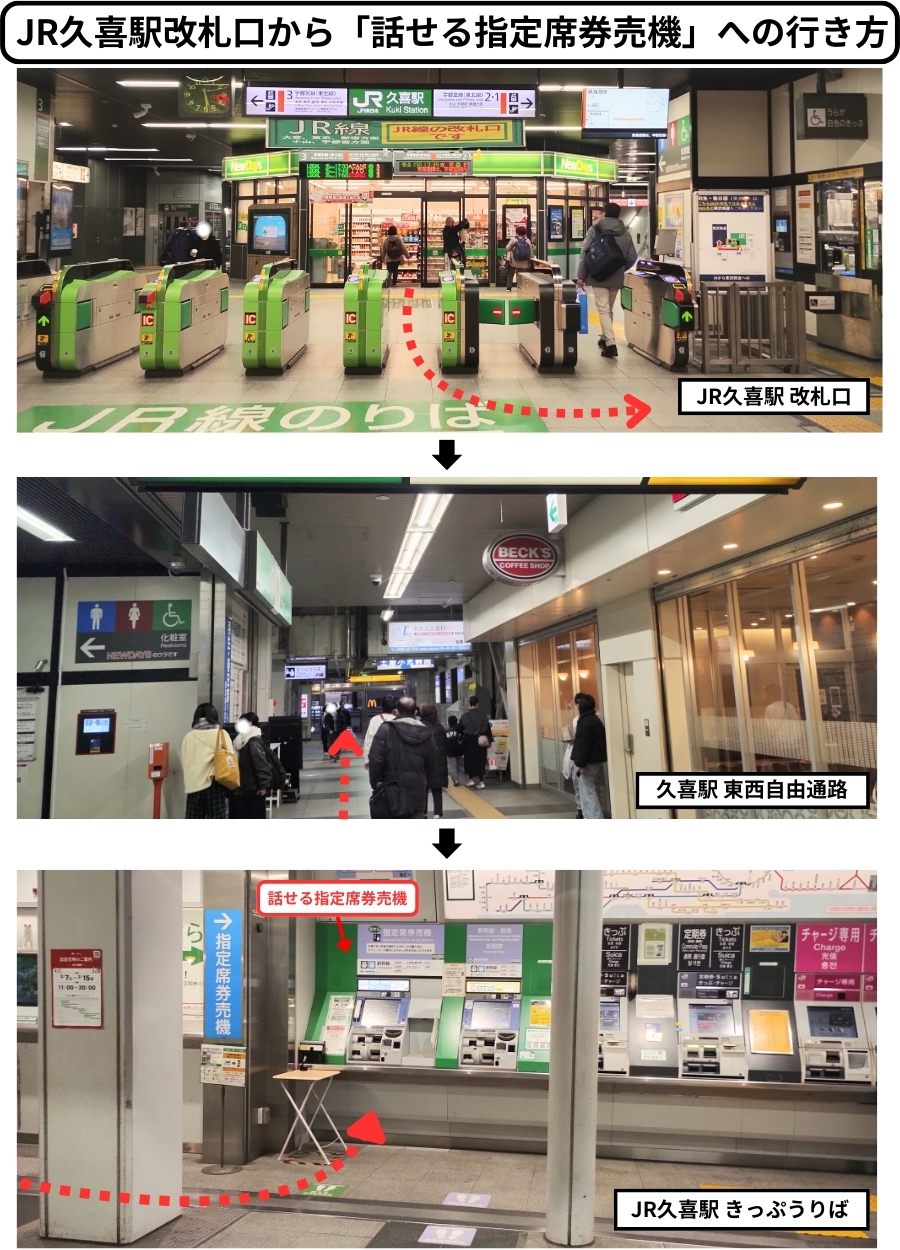- JR久喜駅改札口から「話せる指定席券売機」への行き方