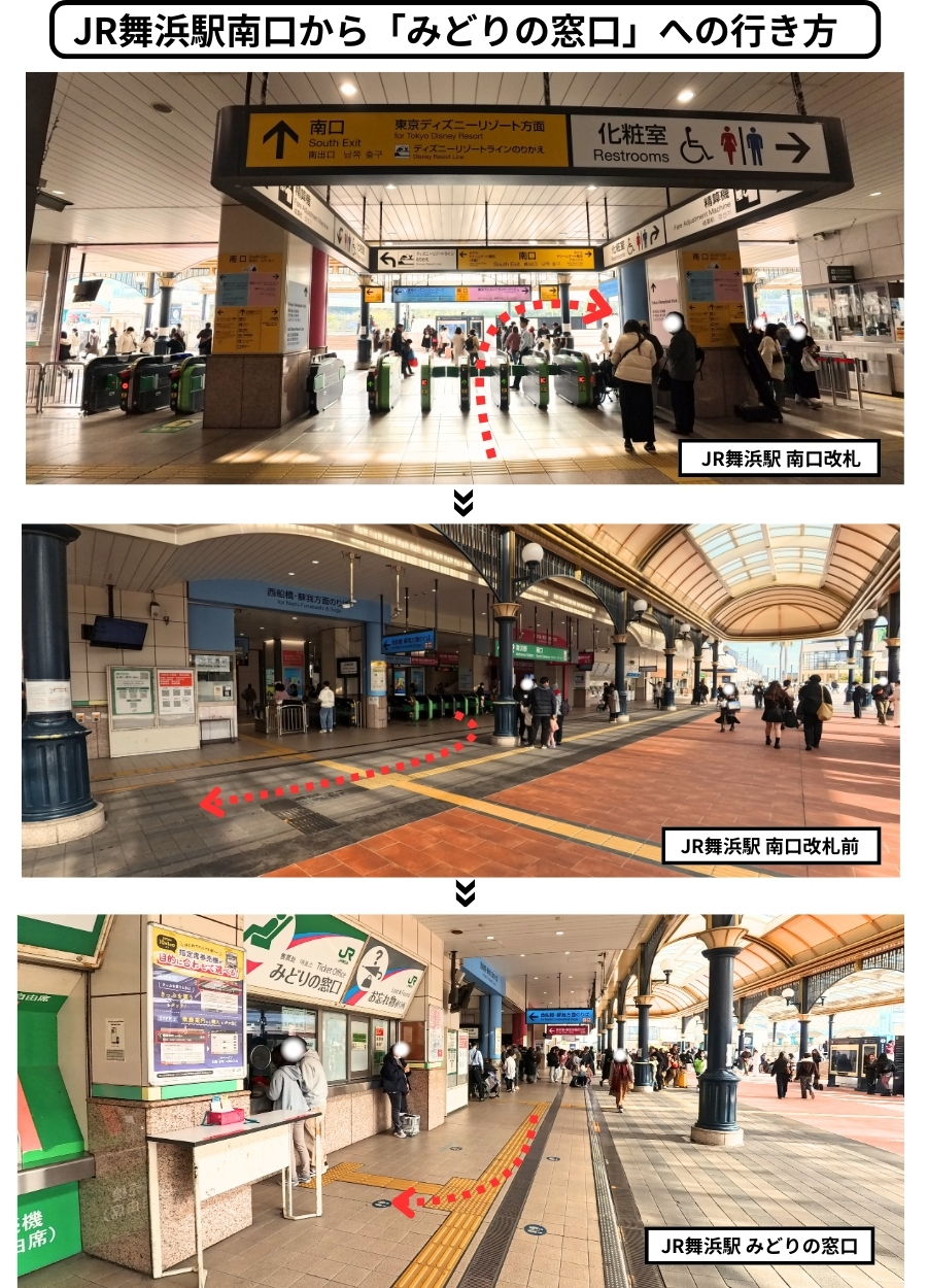 - 舞浜駅のみどりの窓口は南口改札を出て右側に設置されている
