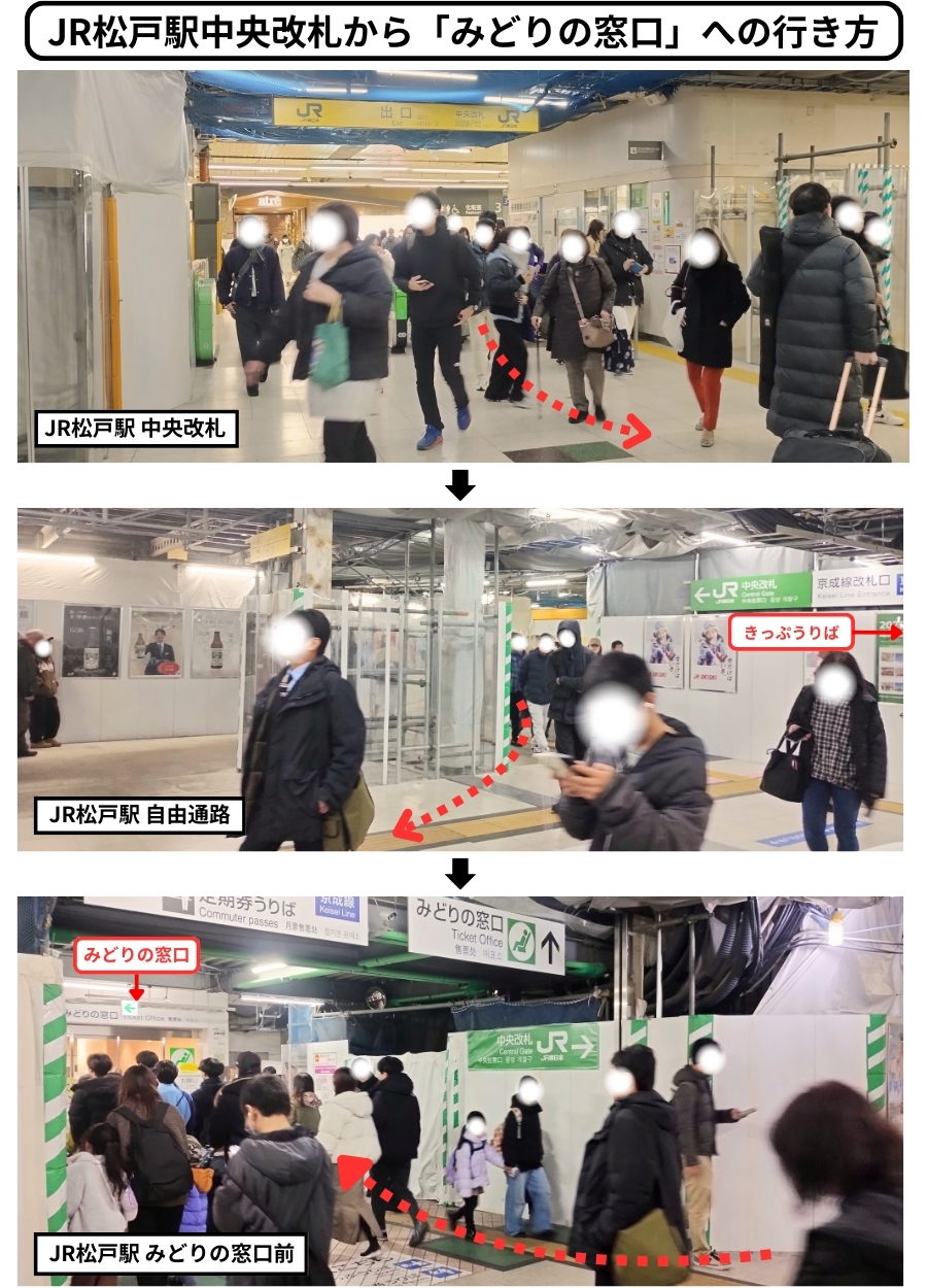 - JR松戸駅改札からみどりの窓口への行き方