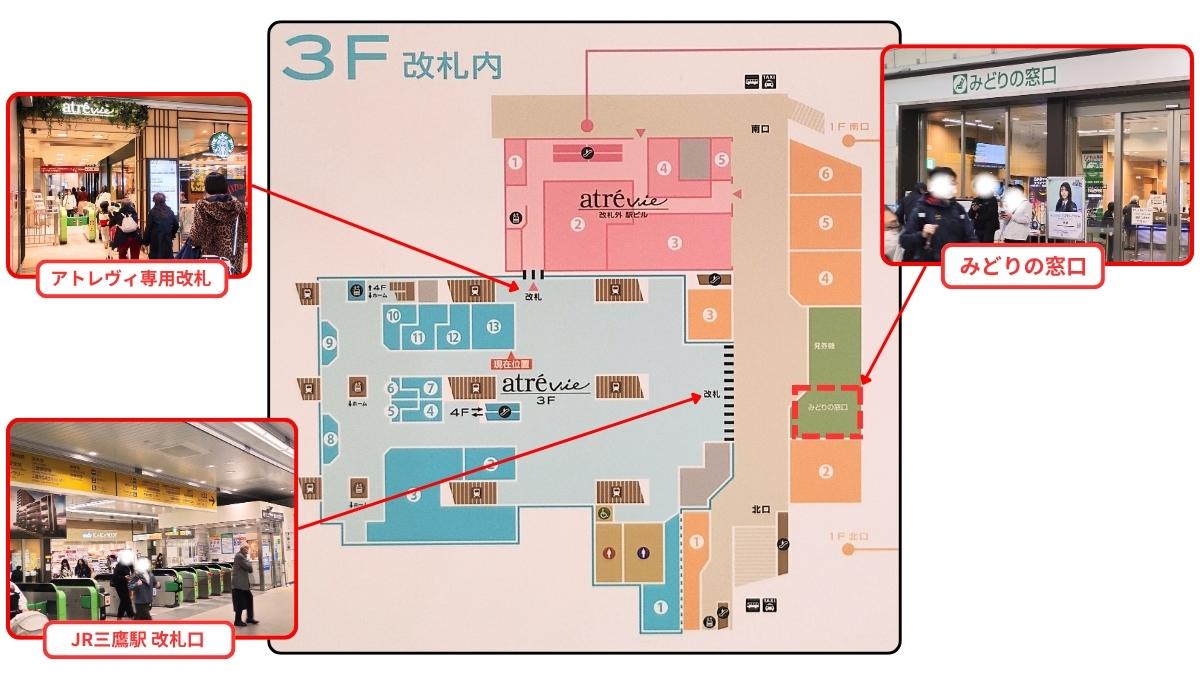 - 三鷹駅構内図と改札口からみどりの窓口への行き方