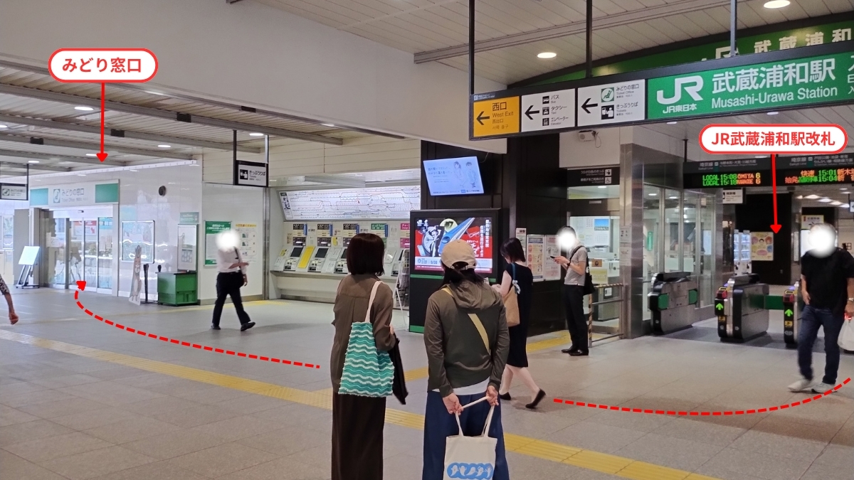 - JR武蔵浦和駅改札口から「みどりの窓口」への行き方