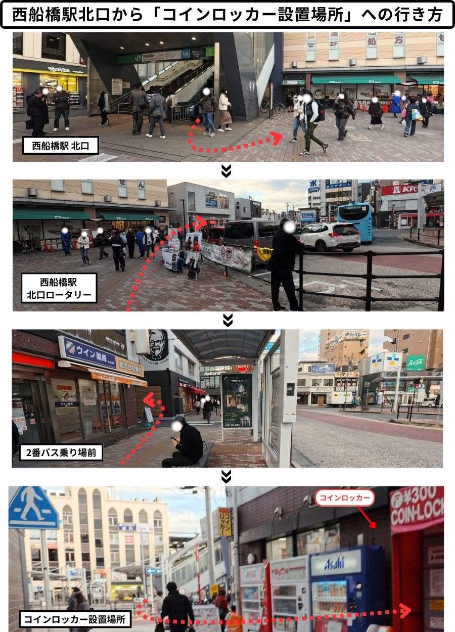 - JR西船橋駅北口からコインロッカー設置場所への行き方