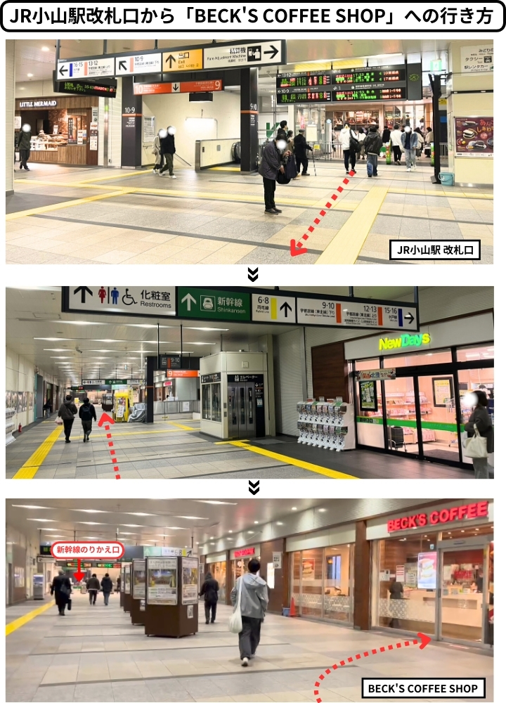 • 小山駅改札口から「ベックスコーヒー」への行き方