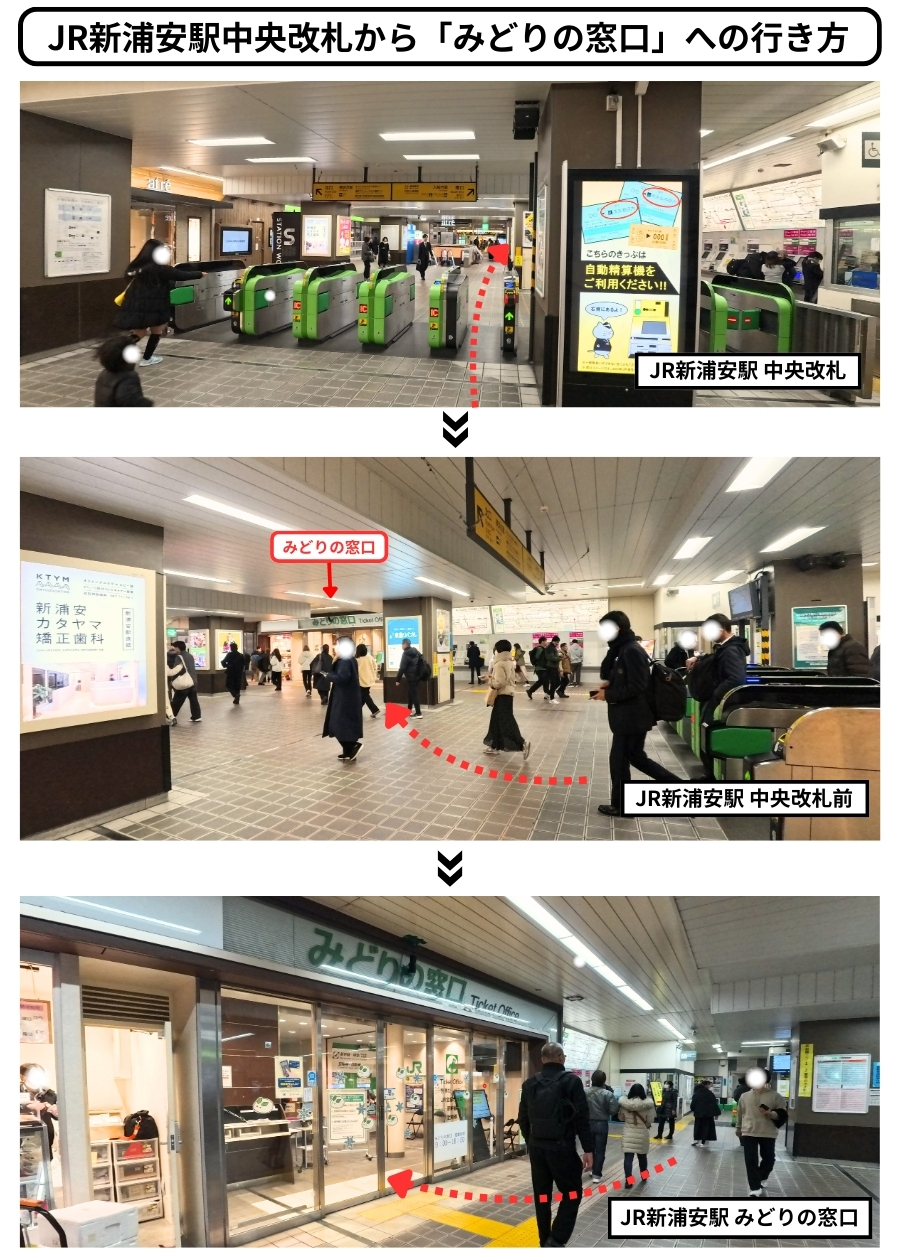 • 新浦安駅改札口から「みどりの窓口」への行き方