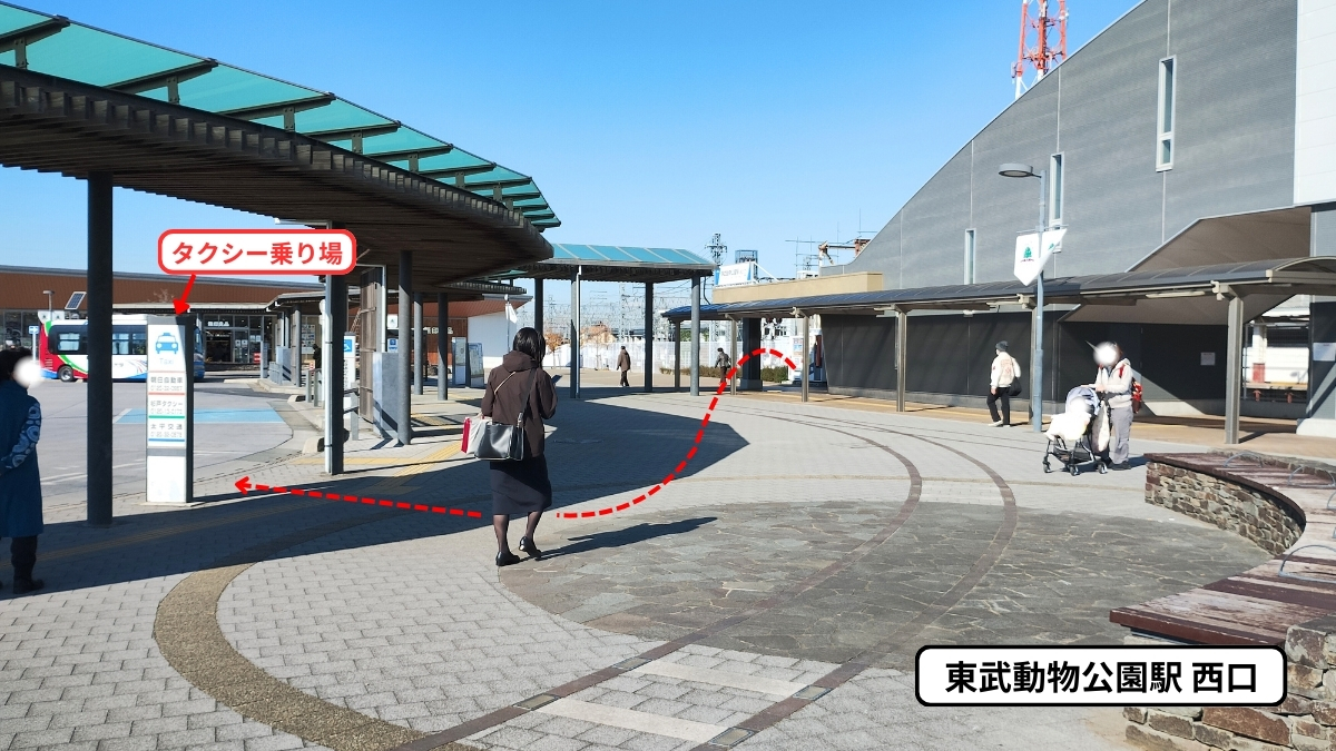 • 東武動物公園駅には東口と西口の2つの出口があり、どちらにもタクシー乗り場がある