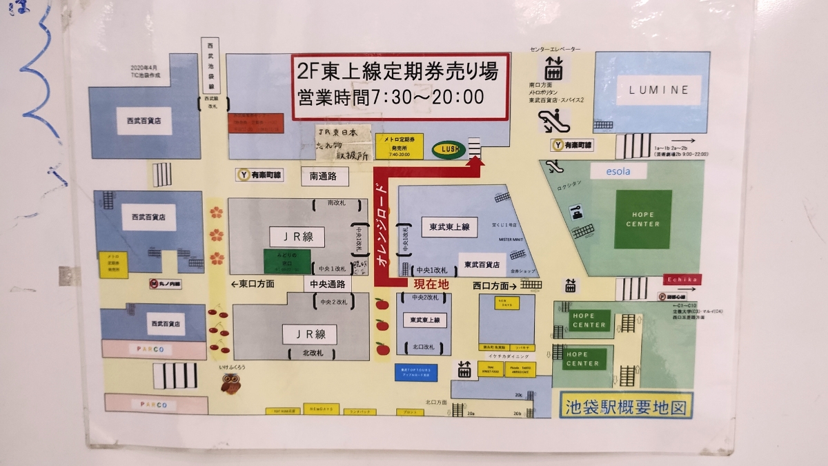 東武東上線【池袋駅】南改札から定期券売り場への行き方|営業時間・場所・店内の混雑状況を写真解説