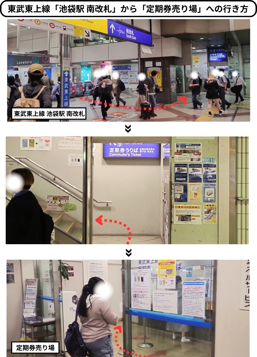 • 東武東上線【池袋駅】南改札から定期券売り場への行き方