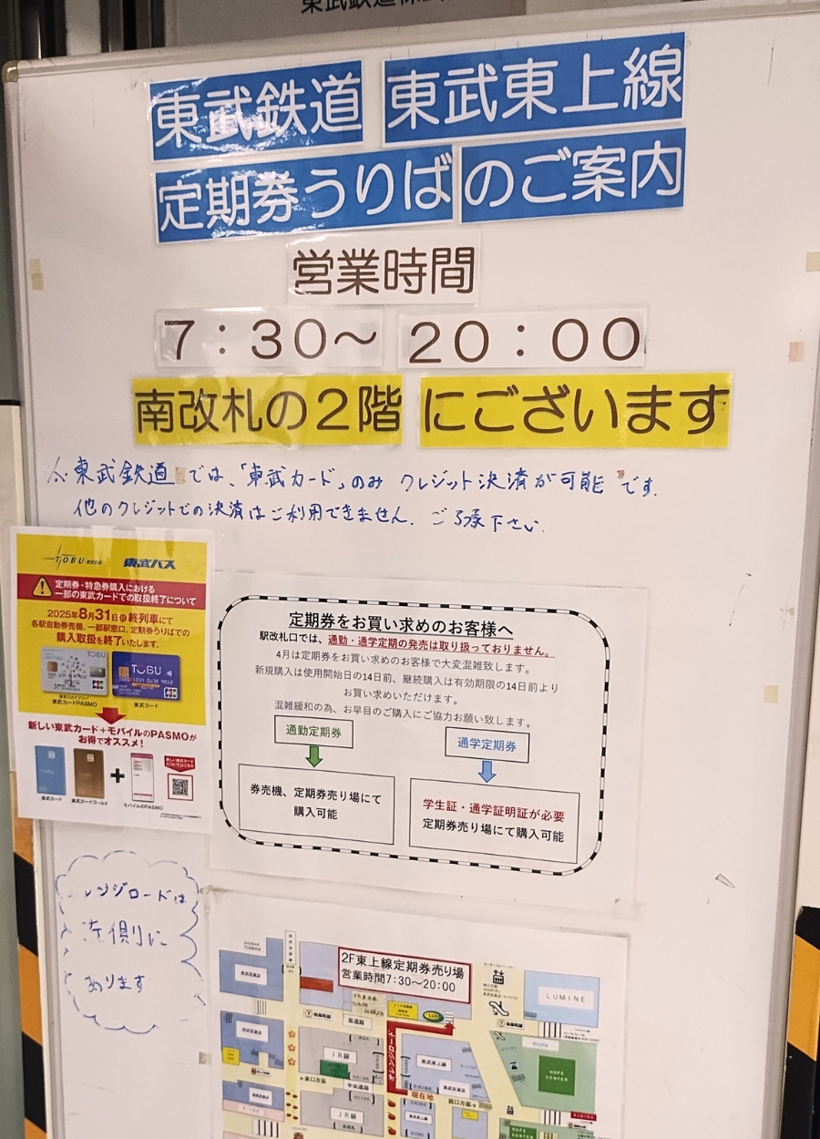 東武東上線:定期券売り場の案内板