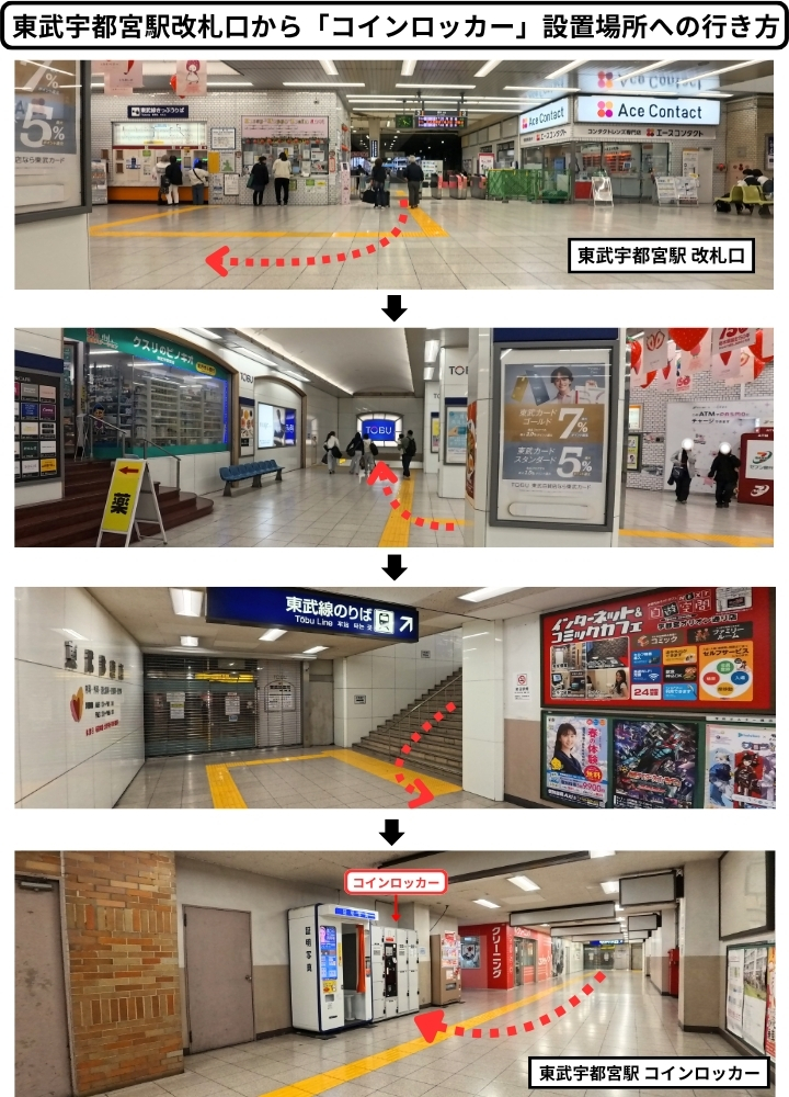 - 東武宇都宮駅改札口からコインロッカー設置場所への行き方