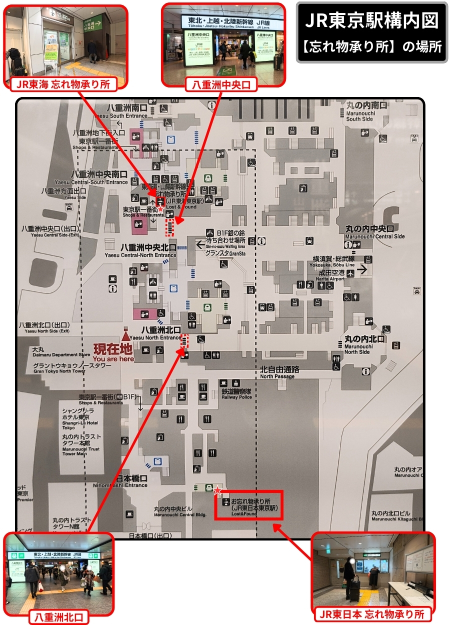 - JR東海の忘れ物承り所は八重洲中央口を出てすぐの場所