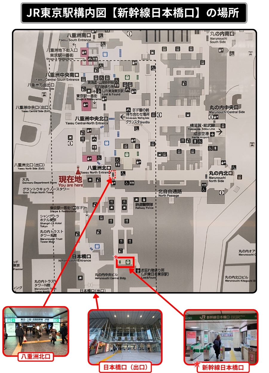 東京駅八重洲北口から「日本橋口」への行き方を写真解説|構内図を元に新幹線日本橋口改札の場所を紹介