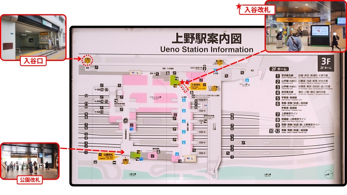 JR上野駅「入谷改札」はどこ?駅構内図をもとに入谷改札の場所や行き方を写真解説
